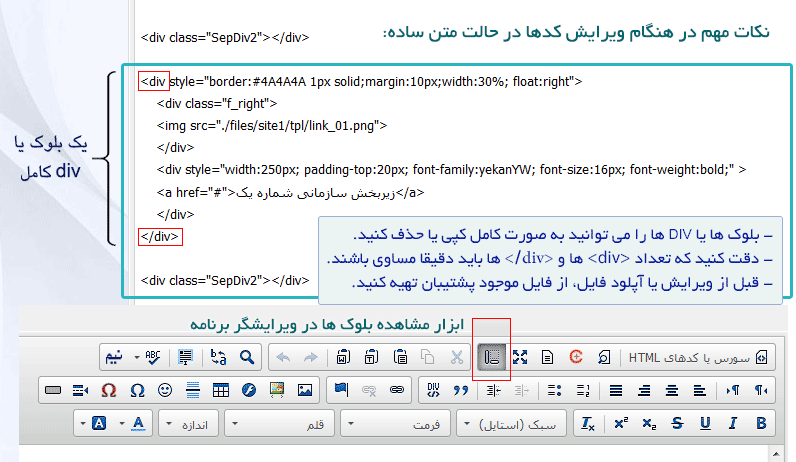 نسخه 3396 تاریخ 1396/4/11 : راهنمای مشاهده و ویرایش بلوک ها یا DIV ها