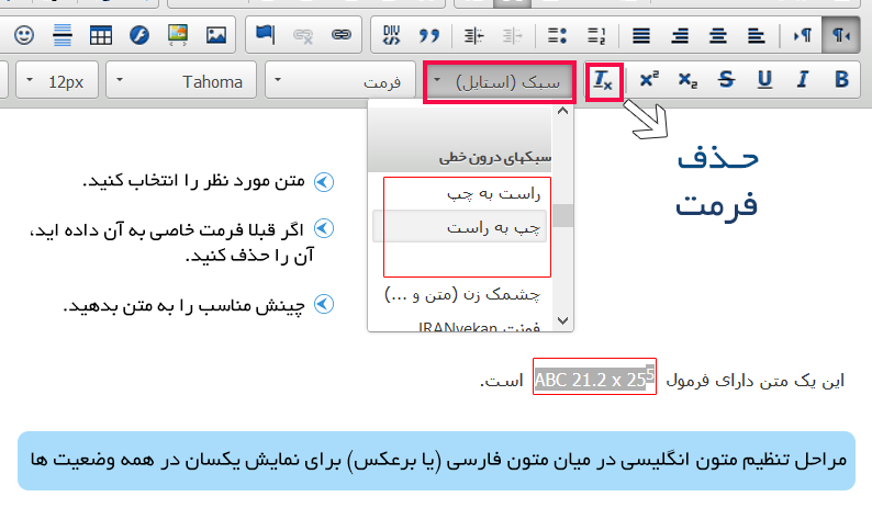 • با کپی کردن اطلاعات از ورد، فرمت (استایل) متون به صورت خودکار حذف نمی شود. در صورت لزوم می توانید از دکمه های زیر برای تغییر روش paste یا حذف فرمت استفاده کنید:
