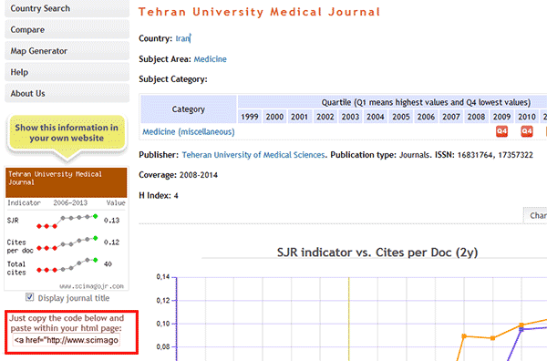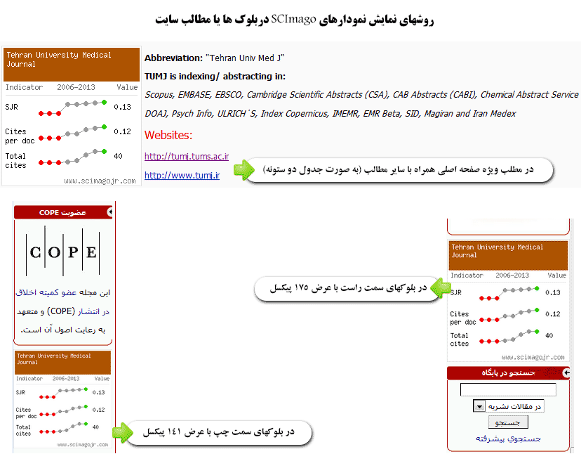 نمایش نمودارهای SCImago در بلوک ها یا مطالب سایت