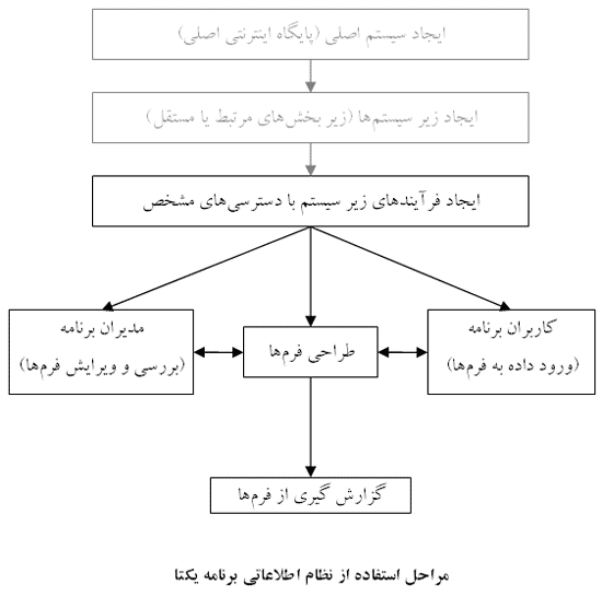 سامانهی مدیریت اطلاعاتی زیربخشی در یکتاوب است که برای انجام سریعتر روندهای پیچیدهای مانند ساختن فرمهای گوناگون، تکمیل و بررسی چند مرحلهای فرمها، ثبت سفارشها و رهگیری روندهای گردش کار به صورت الکترونیک طراحی شده است. ساختار کلی نظام جامع اطلاعاتی یکتاوب چنین است:
