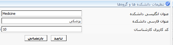 تنظیمات عمومى پایگاه | تنظیمات زبان پایگاه | تنظیم زبان پایگاه شامل فعال بودن زبانهای فارسی و انگلیسی و پیوندهای مربوطه |